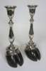 TAXIDERMY - PAIR OF SHEFFIELD PLATED CATTLE HOOF MOUNTED CANDLESTICKS