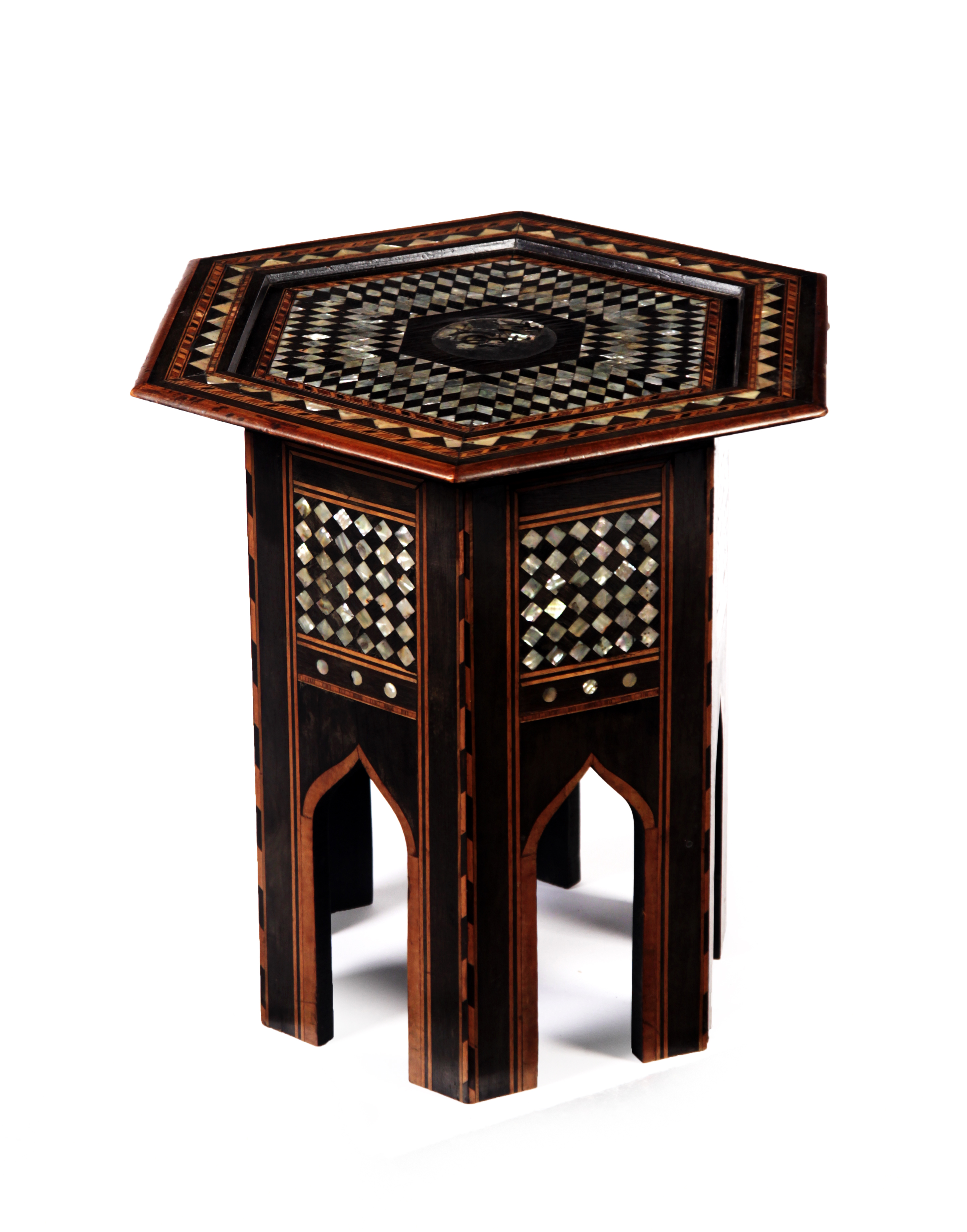the hexagonal top with arcaded sides and allover mother of pearl and geometric inlay