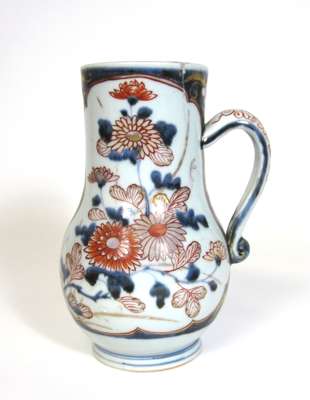 the baluster shaped body with foliate decoration and a loop handle, with traces of gilding