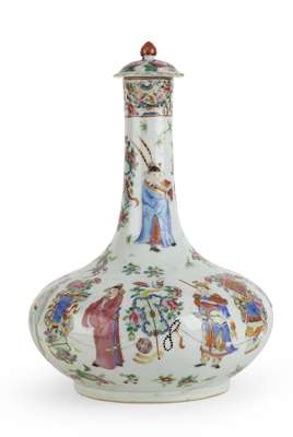 CHINESE EXPORT FAMILLE ROSE 'IMMORTALS' BASIN AND BOTTLE VASE