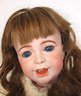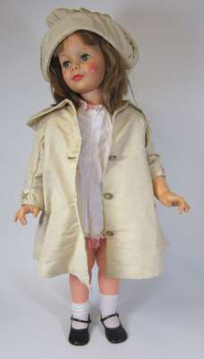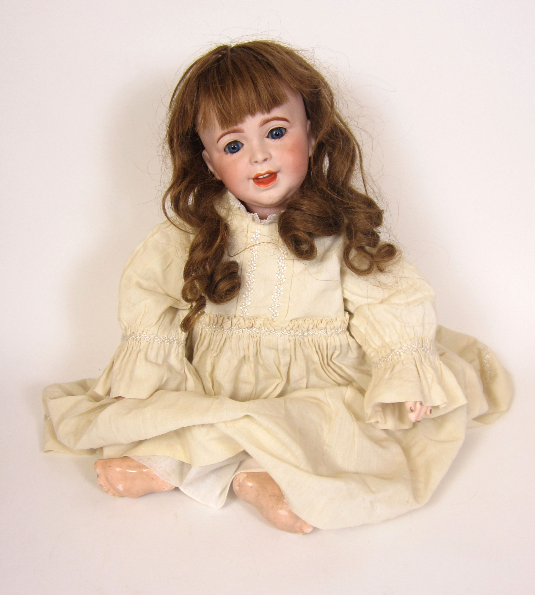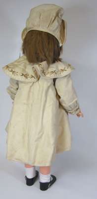 with blue glass sleeping eyes, open/closed mouth showing two teeth, new wig, marked 'SFBJ 236 Paris 10', on jointed composition body, 50cm long; IDEAL GIRL DOLL, with blue sleeping eyes, closed smiling mouth, new wig***, marked 'Ideal Doll G35', contemporary gingham dress and smock, 90cm long (2)