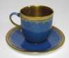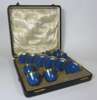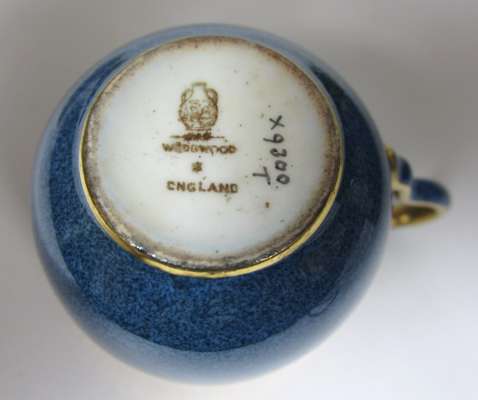 with maker's marks, comprising of: two footed comports; two low comports; two dishes; and 12 plates; together with a BOXED WEDGWOOD COFFEE SERVICE, with gilt highlights on a blue ground, with maker's marks, comprising of: six coffee cans and six saucers (qty)