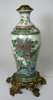 of baluster form, decorated with birds amongst blossoming peonies, converted to a lamp with a decorative gilt metal base