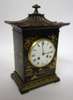the white enamelled dial with Roman numerals, in a decorative case surmounted by a wooden canopy and gilded finial, the movement striking on a bell