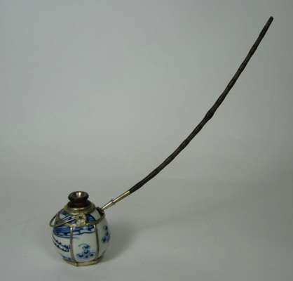 CHINESE BLUE AND WHITE PORCELAIN OPIUM PIPE