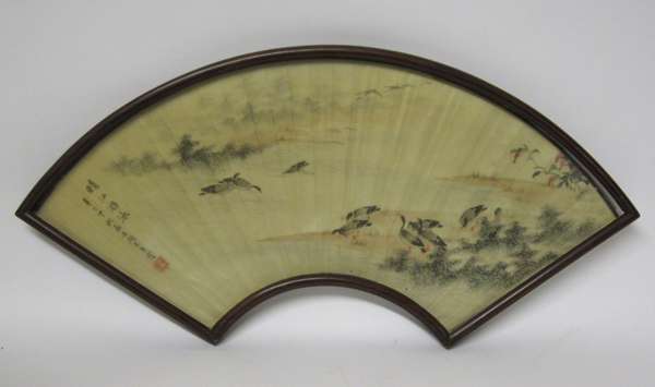 one depicting foliage amongst rockwork, the other decorated with birds (2)