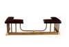 the faux leather buttoned pads raised on reeded supports and an extending base