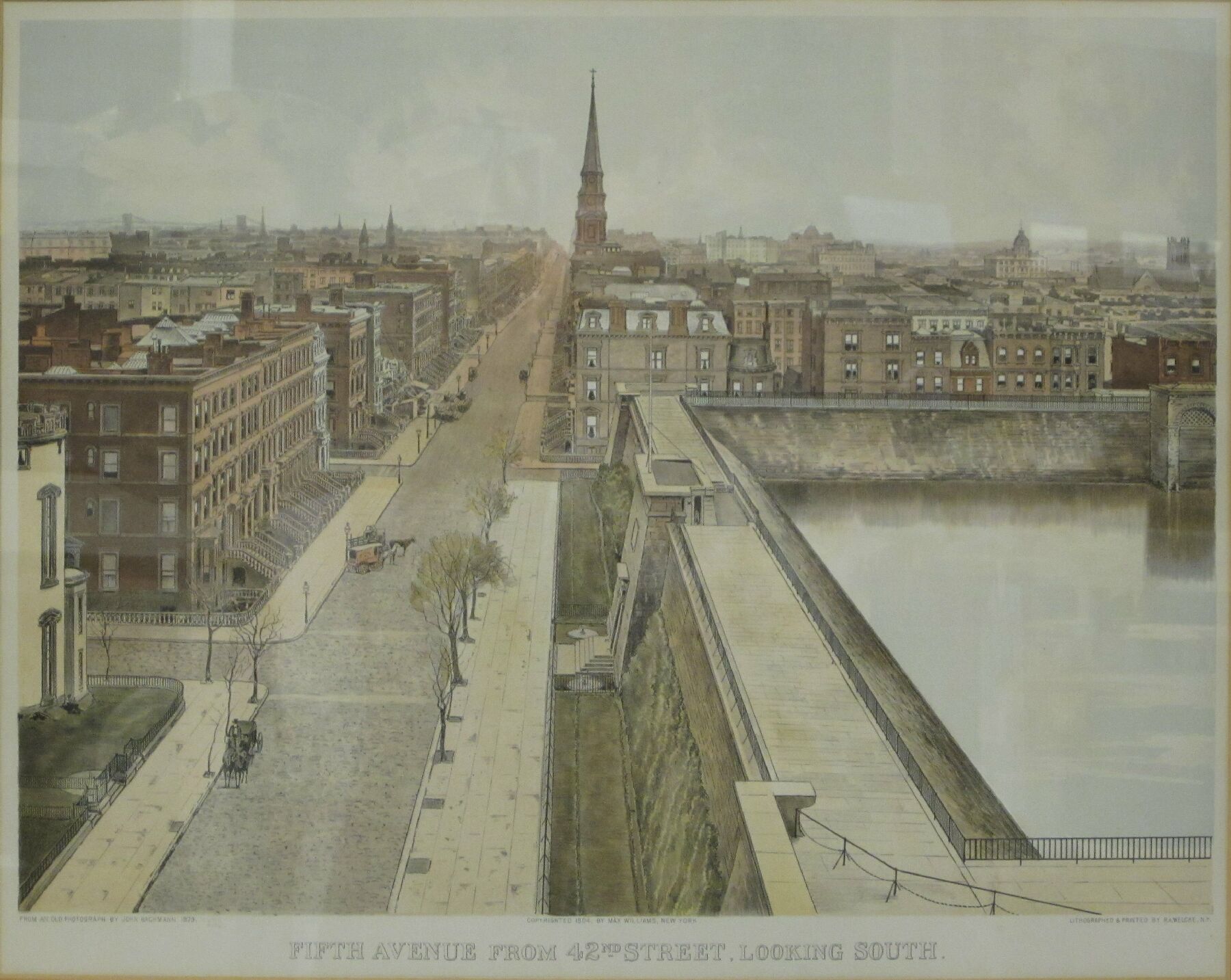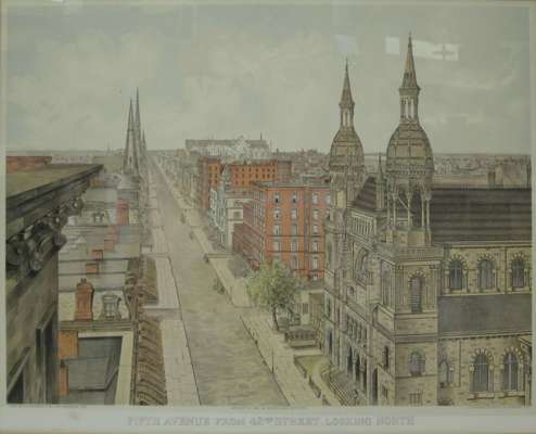 the first titled 'Fifth Avenue from 42nd Street Looking South', the second 'Fifth Avenue from 42nd Street Looking North', printed by 'R. A. Welcke, N.Y.', from old photogrpahs by John Bachman, 1879 (2)