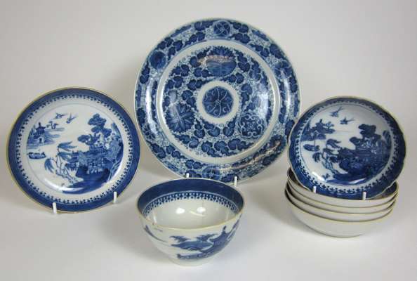 GROUP OF CHINESE EXPORT BLUE AND WHITE PORCELAIN