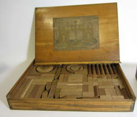 the first, a boxed set of 'Richter's Anchor Blocks', with various intruction manuals and booklets, 36.5cm wide (size of box); the second, a boxed set, of similar design, with label to lid 'Imporved Corinthian Architecture', 49cm wide (size of box) (2)