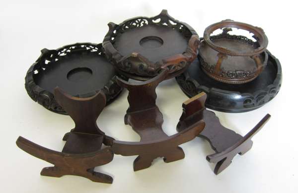 of various form, shape and size, including a number of carved hardwood stands and plate stands (qty)