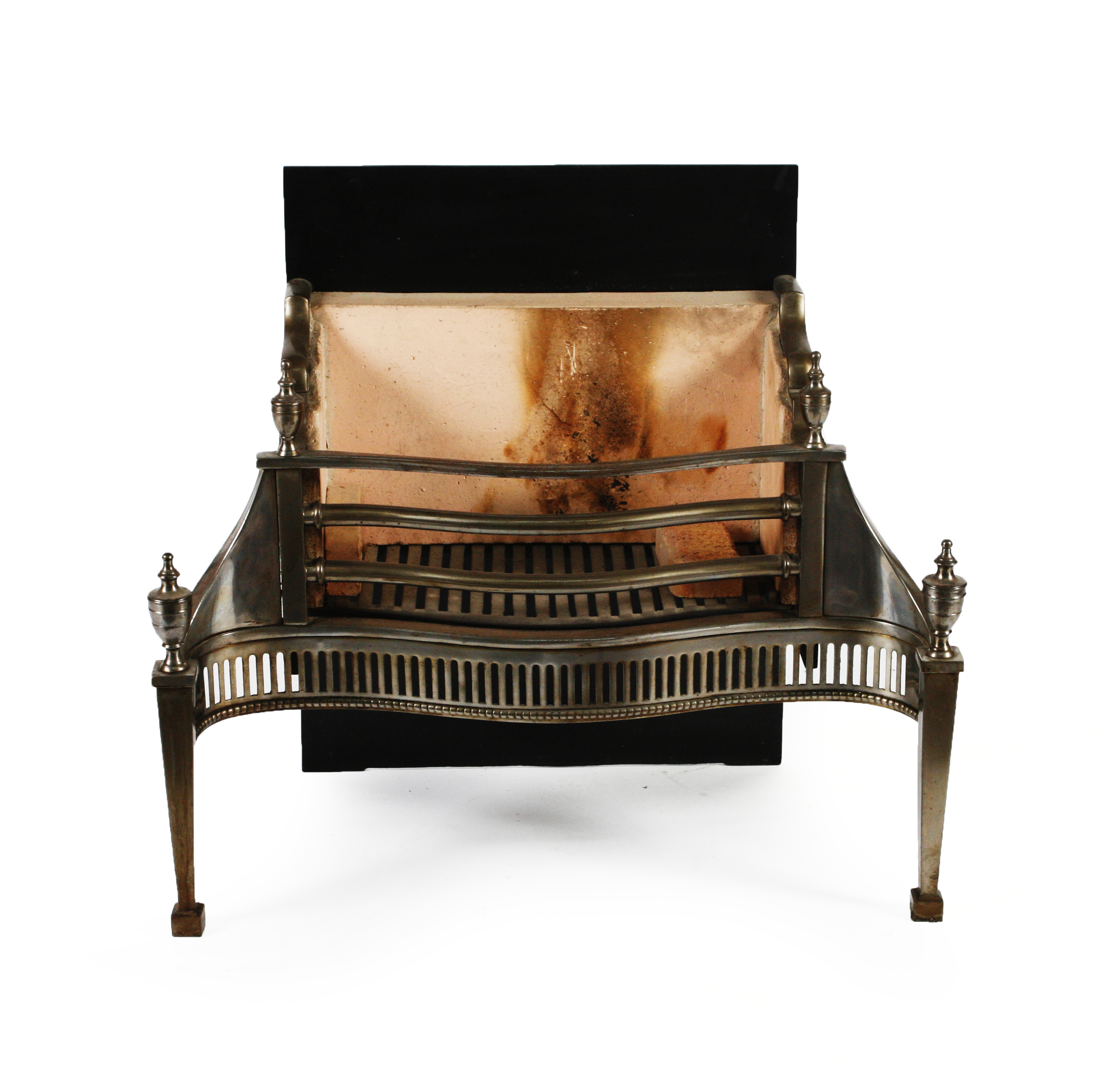 of serpentine form with a pierced apron, flanked by urn shaped finials, raised on square tapering legs