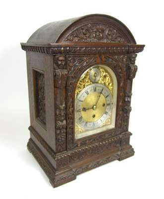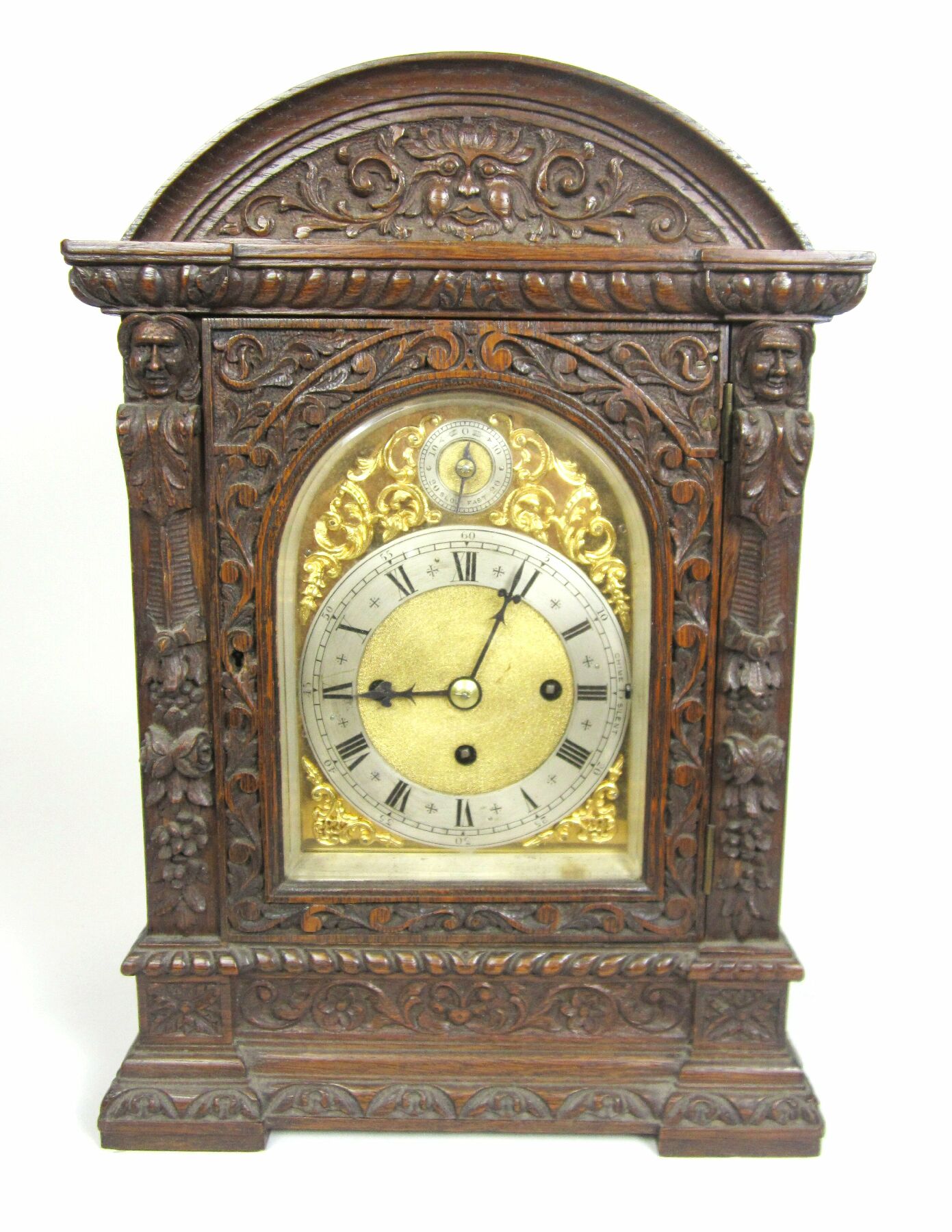 EDWARDIAN CARVED OAK MANTLE CLOCK