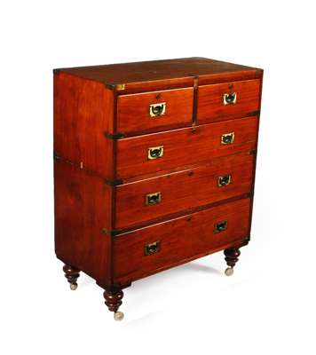 the rectangular top above two short and three graduated long drawers, raised on turned legs