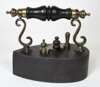 the hollow tear shaped body with brass mounts, a swivel catch and a turned wooden handle