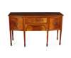 the cross banded top above two drawers, flanked by a cellarette drawer and a cupboard, raised on square tapering legs and spade feet