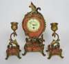 FRENCH PINK MARBLE AND GILT METAL MOUNTED CLOCK GARNITURE
