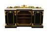 VICTORIAN EBONISED AND GILTWOOD INVERTED BREAKFRONT MARBLE TOPPED CREDENZA
