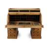 the three quarter galleried top above a cylinder fall, enclosing a fitted interior and sliding writing surface, raised on twin pedestals, each with four graduated drawers