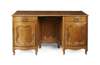 the shaped rectangular top with a moulded edge above a recessed cupboard door flanked by banks of drawers and cupboards, raised on short cabriole legs