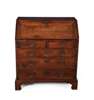 the fall flap enclosing a fitted interior above two short and three graduated long drawers, raised on bracket feet