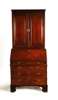 the moulded cornice above panel doors, over a fall flap enclosing a fitted interior, over a frieze drawer, two short and two graduated long drawers, raised on bracket feet