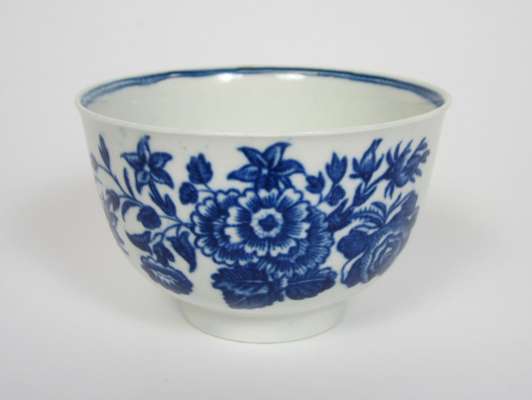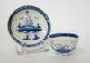 MINIATURE CAUGHLEY BLUE AND WHITE TEA BOWL AND SAUCER