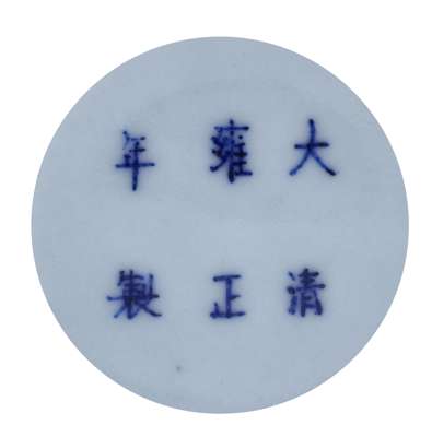 of drum form, in pale blue glaze with moulded roundels depicting phoenixes and raised white dot banding to the neck and foot, underglaze six character Yongzheng mark