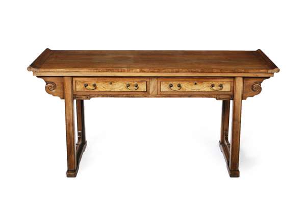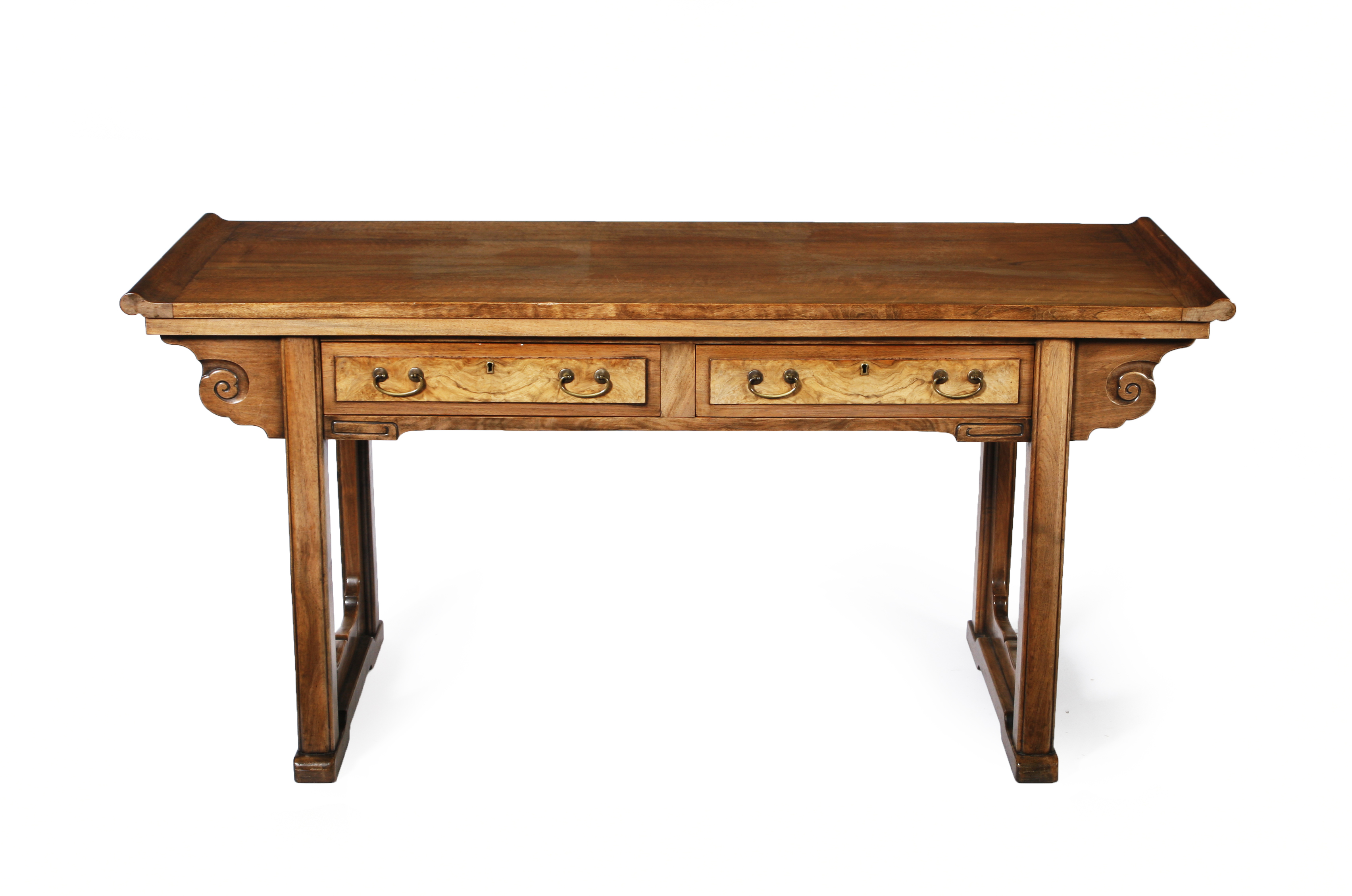 the moulded rectangular top above two frieze drawers, over moulded legs, raised on stile feet