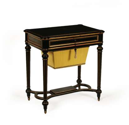VICTORIAN STYLE EBONISED AND GILTWOOD WORK TABLE