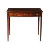 the shaped top above a frieze drawer, flanked by two false drawers, raised on square tapering legs