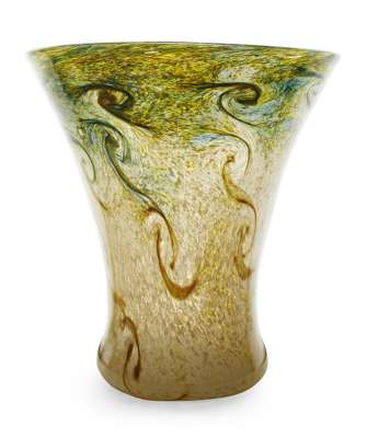 of tapering trumpet form, mottled white, yellow and green swirling inclusions