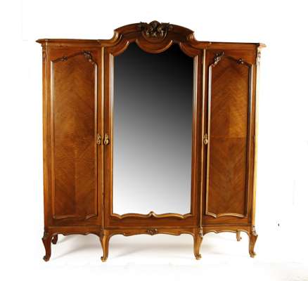 FRENCH STYLE WALNUT THREE DOOR WARDROBE