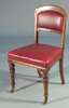 including one carver, the incised backs with upholstered panels, above stuffover seats on turned and tapered legs with dentil details (6)