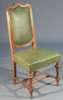each with shaped and upholstered panel backs, above stuffover seats on turned and blocked legs (6)