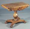 the rounded rectangular top above scrolled frieze on faceted baluster column and quadruple base with carved claw feet,