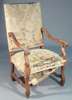 in the 17th century manner, with square upholstered back above moulded legs linked by curved stretchers