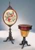 the hinged octagonal moulded top enclosing compartments and central tapering wool bin raised on turned pedestal and tripod base with carved cabriole legs
