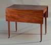 the rectangular top above boxwood strung frieze drawer and oposing dummy, on square section tapered legs with castors