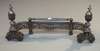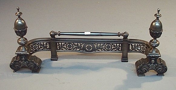 with attached fire dogs, the pierced gallery surmounted by leaf cast finials,