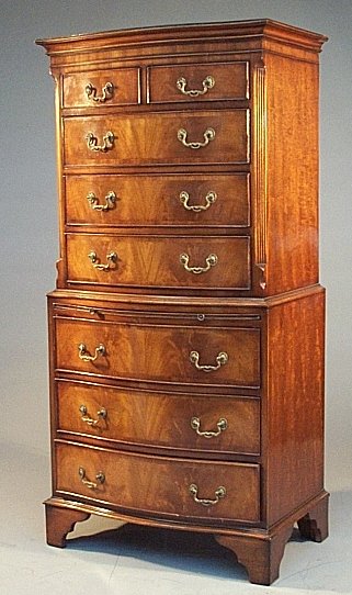 A 'Reprodux' mahogany serpentine tallboy