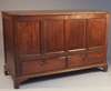 the hinged oblong top above four fielded panels, two drawers below on bracket feet