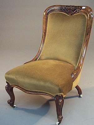the top rail carved with a coronet, the padded back and serpentine seat on moulded cabriole feet and scroll toes