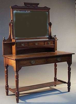 the carved pediment above a cushion moulded cornice, a mirror door below flanked by doors with foliate carved panels and lower drawers, the base with two drawers, on a bracket shaped base and the accompanying dressing table (2)
