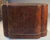 the oblong top with bowed ends above six doors each enclosing a fitted interior on a plinth