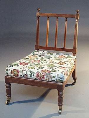 the square back with three turned supports on turned finials, the squab seat on turned front legs