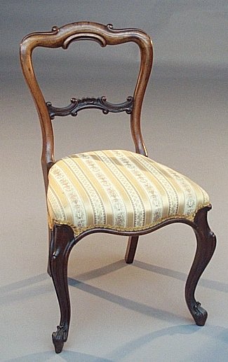 the serpentine top rail above a horizontal carved splat, the stuff over seat on moulded cabriole legs and peg feet (6)