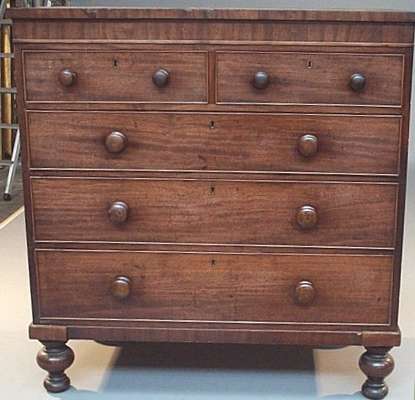 of two short and three long graduated drawers on later turned feet