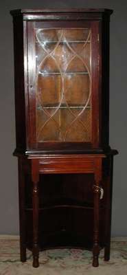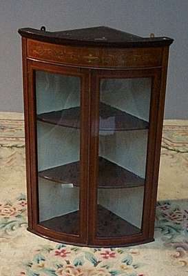 An Edwardian mahogany hanging corner cabinet