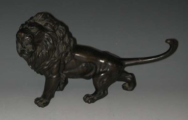 A Japanese bronze figure of a standing lion